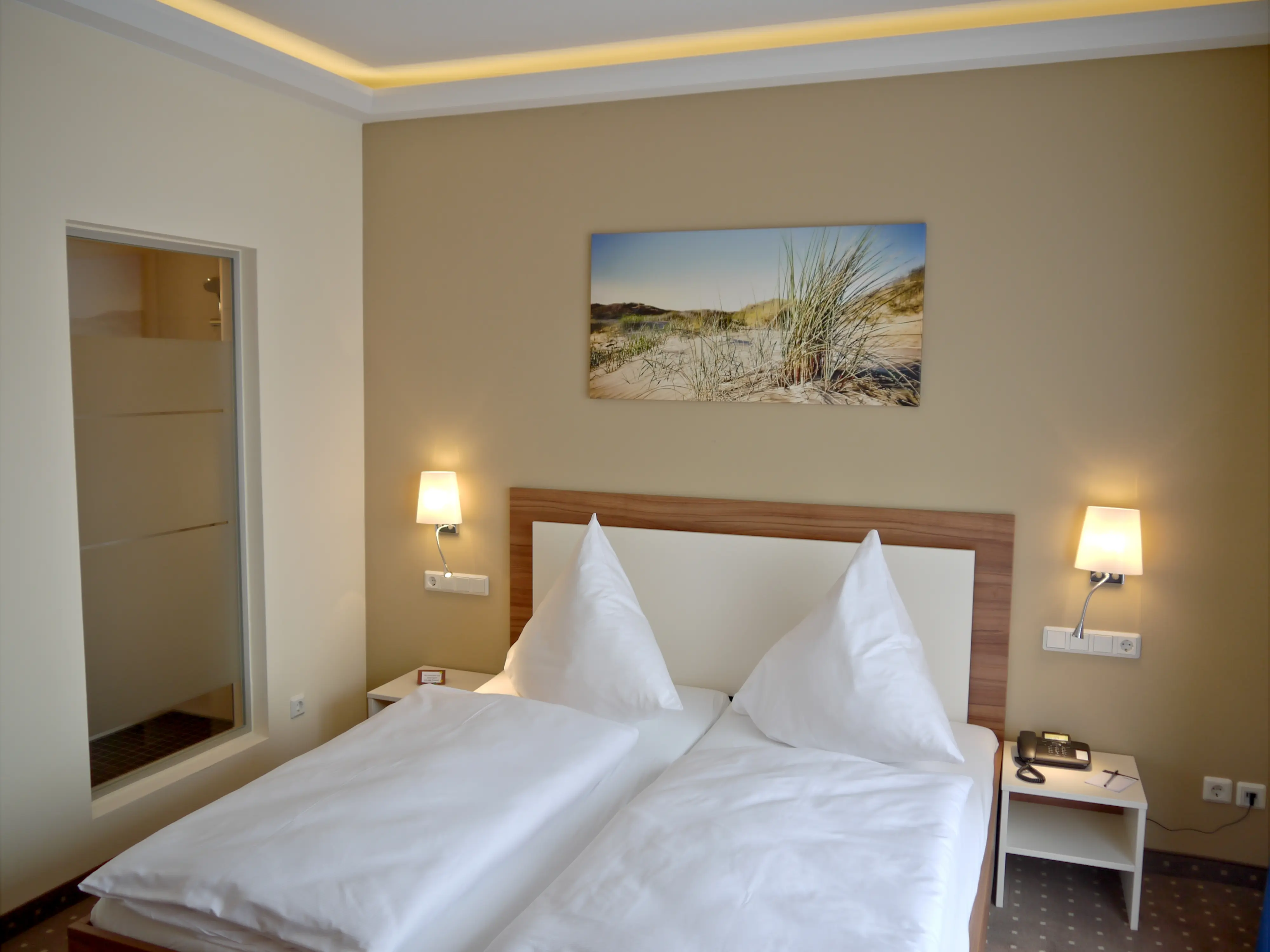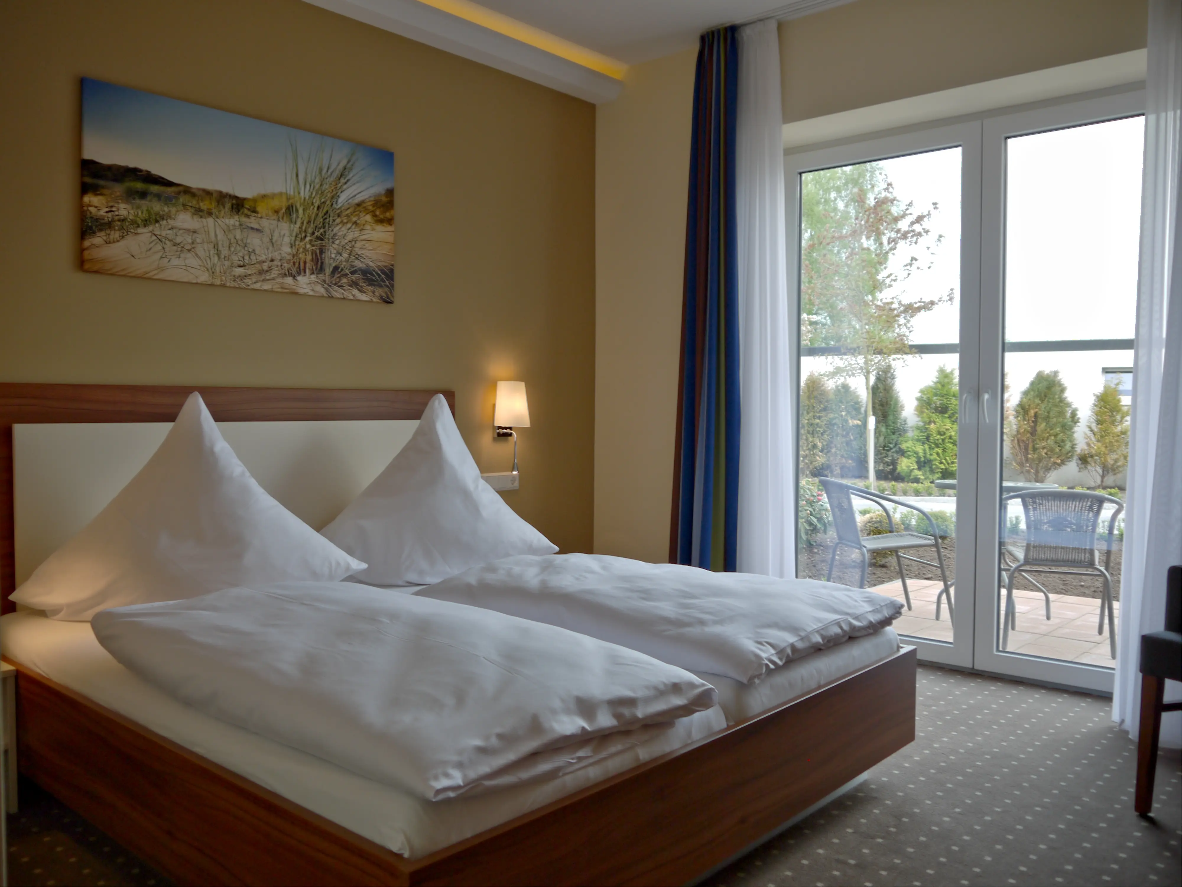 Die Superiorzimmer mit Terrasse sind etwa 23 m2 groß. In diesen Zimmern sorgen 1,80 m breite Doppelbetten mit verstellbaren Lattenrosten und Taschenfederkernmatratzen für einen erholsamen Schlaf.