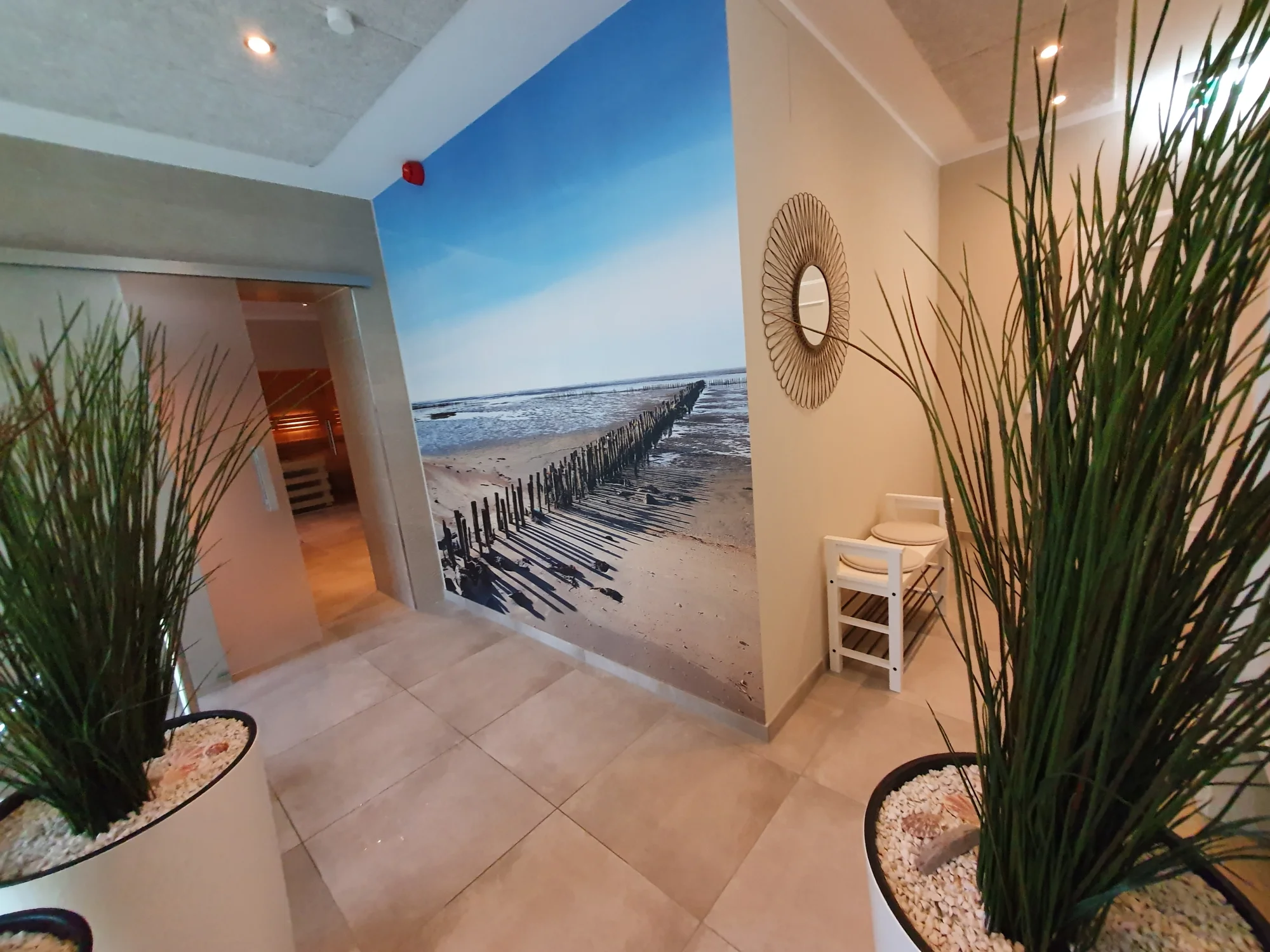Nach einer ausgedehnten Radtour entlang des Deiches oder nach einem anstrengenden Geschäftstag entführen wir Sie in unserem Wellnessbereich an einen Ort der Ruhe und Entspannung, an dem Sie den Alltagsstress hinter sich lassen können. Entdecken Sie eine Welt des Wohlbefindens und genießen Sie unsere Saunalandschaft mit einer finnischen Sauna (95°C), einer Bio-Sauna (60°C), einem Dampfbad (45°C) und einem Whirlpool (32°C). Zwischen den Saunagängen entspannen Sie sich in dem großzügigen Ruhebereich mit Sitzecke, Liegen und einer Außenterrasse.